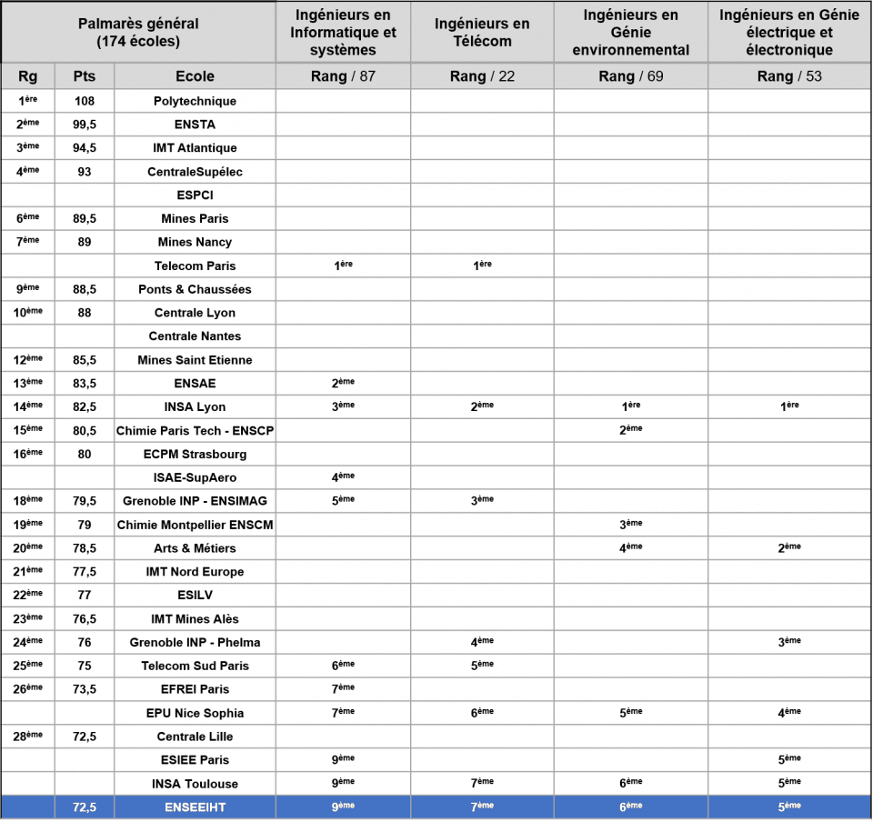 - Télécommunications : 7ème / 22 écoles (classement télécommunications),