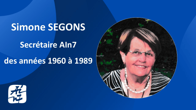 Simone fut la secrétaire inamovible de l'AIn7 entre les années 60 et 1989, date de son départ en retraite... Plus que simple secrétaire, elle fut l'âme et la mémoire de l'Association. Connaissant et mémorisant les étudiants, gardant de nombreux contacts avec eux devenus ingénieurs, dirigeants, ... facilitant les relations avec l’École, conseillant discrètement mais efficacement tous les Présidents de cette époque : Remenieras, Masquelier, Bratieres, Ritout ... et moi-même. Elle s'était rendue véritablement indispensable et appréciée de tous ..