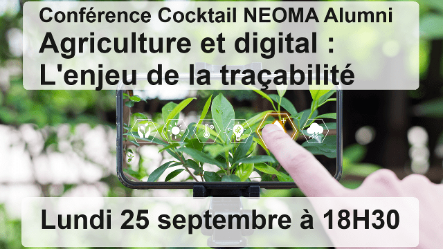 Conférence sur le thème "Agriculture et digital : l'enjeu de la traçabilité", le 25/09/2023 - 18h30 - organisée par Neoma Alumni Club Digital & Technologie.