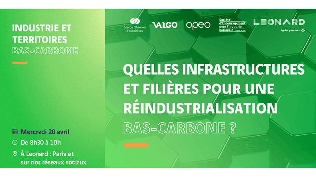 Le 20 Avril 2022 (8h30 - 10h) Conférence sur le thème : Quelles infrastructures et filières pour une réindustrialisation bas carbone ?